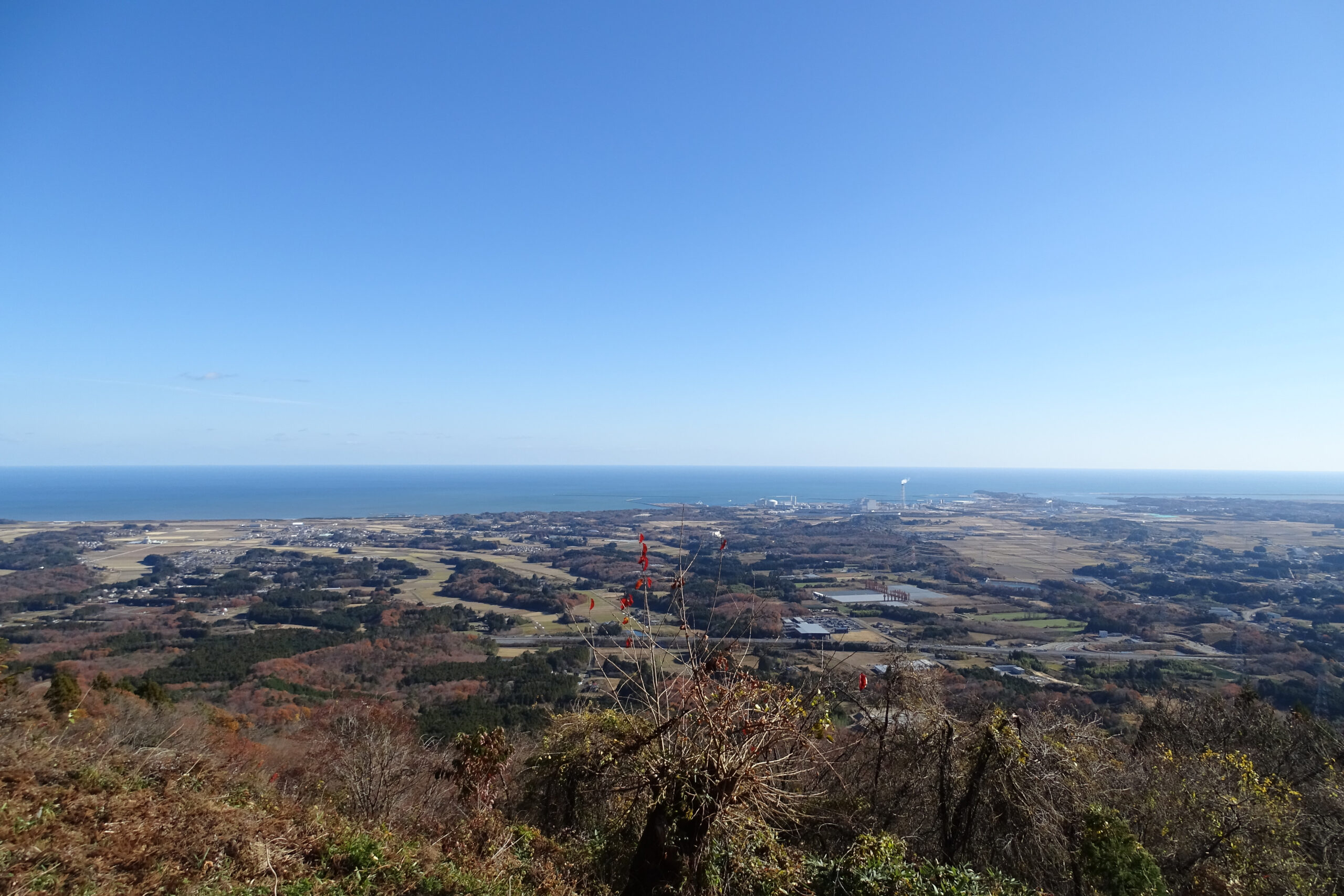 鹿狼山(かろうさん)標高430mの低山ながら頂上の眺望が素晴らしく太平洋、蔵王、新地町まで一望できます。