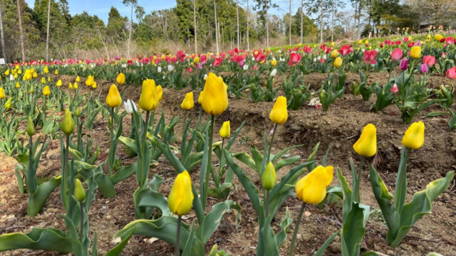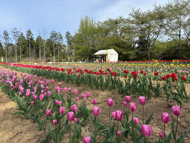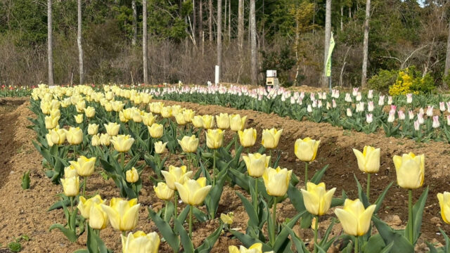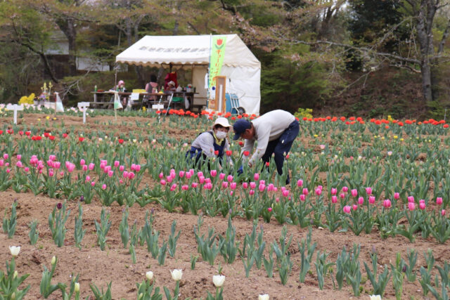 桜の回廊(右近清水)」とチューリップ祭りなど、美しい花が咲きそろい、また、新地町は清水が湧き出る町で、「新地三清水」の貴重な名水が楽しめます。