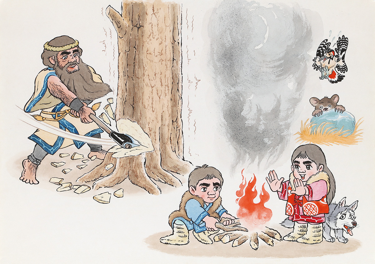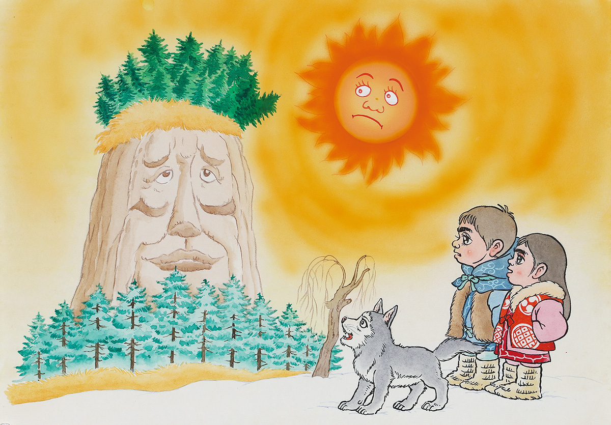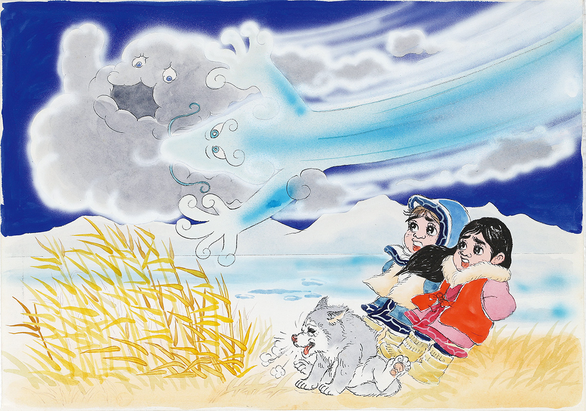 おおかみスッテン!は、知里幸恵ノートの「知恵くらべ 氷の上に小さい狼の子がころんだ」を原著とする絵物語です。