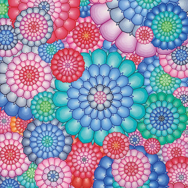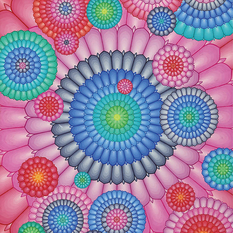 作品は、一見するとCG やコラージュ作品に見えるが、すべて手描きである。