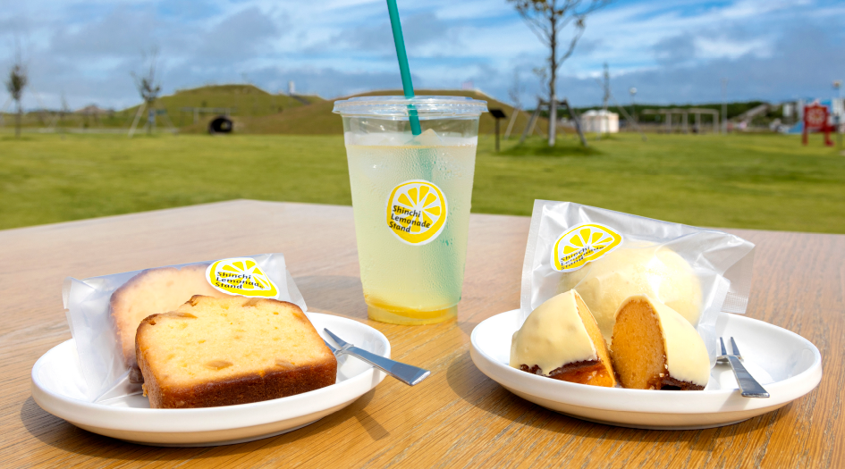 しっとりしたパウンド生地を爽やかな甘さのレモンチョコレートでコーティングした、口当たりの良いケーキ。「SHINCHI LEMONADE STAND」のレモンケーキです。